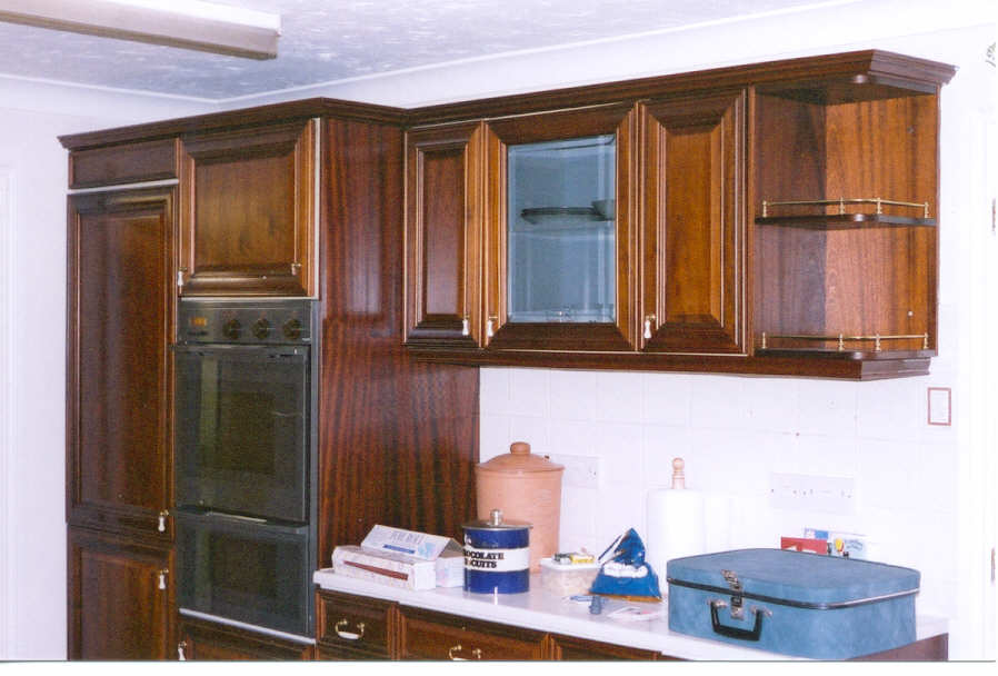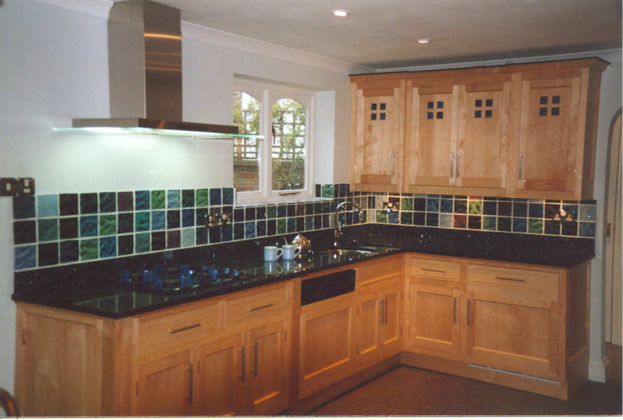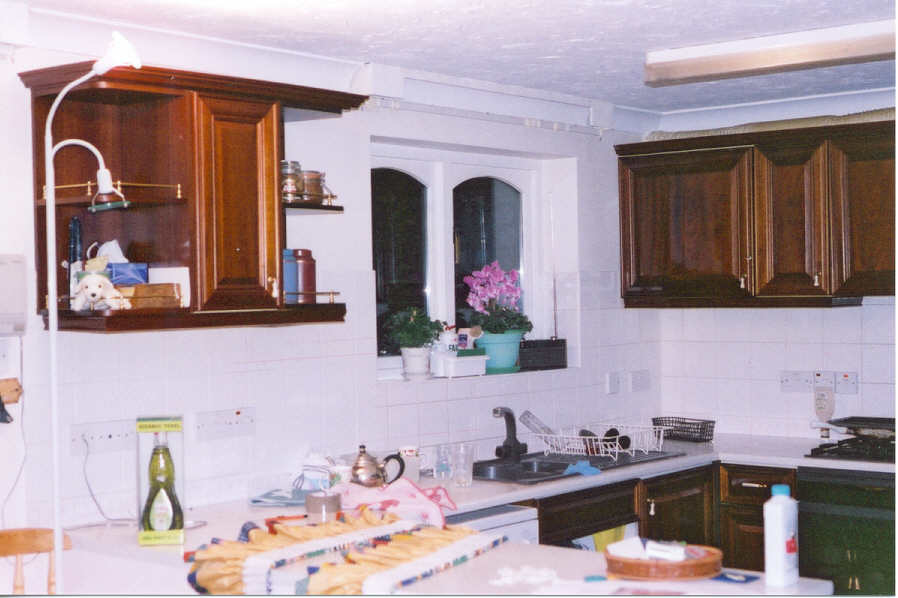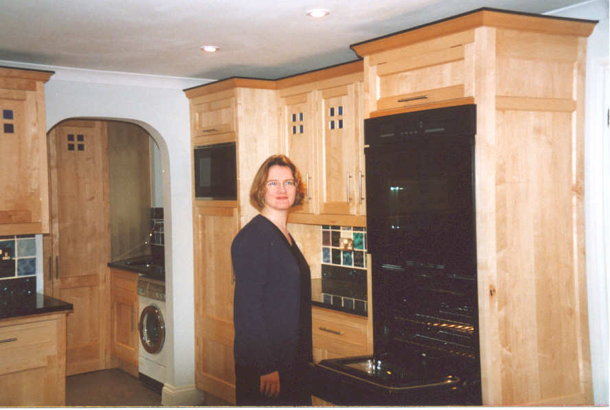 Our experienceThe whole thing started back in [March] 1999 when Karen suggested that if we were ever going to replace the existing kitchen (which neither of us liked), we should really do it before we considered starting a family. That way, both of us could contribute to the cost. From such little seeds great acorns grow! We're both keen cooks, so a good oven was going to be essential. Preferably it should be wider than the present one (so you can fit two Yorkshire pudding trays side by side), and have two ovens (so that the main course can be cooked at a different temperature to the pudding). It doesn't sound too much to ask, but such a thing simply does not exist in the UK. Eventually, Karen found a firm in London ((Moneyhill interiors) which imports an American brand called DACOR (Domestic Appliance CORporation), a smallish family-owned firm in [ ]. They produce a range of single and double ovens which are 25" wide (about 67cm - just perfect) and also self-cleaning which is wonderful. The showroom were selling off a display model at a much reduced price, so we snapped it up, and now there was no turning back. We started looking in earnest at designers / manufacturers in the Spring, including a trip to the Ideal Home exhibition (well worth it, if only to see what's available) and short listed four firms: Interior Designers Guild (IDG) in Winchester; Rivendell, also in Winchester; Smallbone of Devizes; Moneyhill; and Kimmel Kitchens in [ ], who supply the Alno range of units. Kimmel were the cheapest, and the Alno range is very good, but being a fixed range were unable to accommodate our American oven. Moneyhill were similar (but much more expensive), so we turned to the other 'bespoke' suppliers to see if they could fit our requirements. Rivendell rather blotted their copybook by offering us a 'free' NEFF dishwasher in place of our existing Miele. Not only is it a poor exchange, but the prices they were charging for the other appliances was so outrageous they recouped the cost several times over. Smallbone was much more attractive. We found the designer (in Devizes) very congenial, and their kitchens are beautifully made (hand finished, door-in-frame construction from real wood). At the end of the day though, we realised that 'bespoke' meant that they could adjust the width of an individual unit (e.g. to accommodate our oven), but they wouldn't design furniture specifically to fit our kitchen. They were also much the most expensive. So we decided to go with IDG. It was an easy decision: they were convenient (in Winchester); we got on well with them; the quality of their work is excellent; and they worked out cheaper than all the others except Kimmel. All these things helped. The real decider though was that the designer, Mike Fowler, was happy to design the whole thing from scratch, specifically for us. This was great. We worked alongside Mike for a good six months while we played with layouts and designs, found the appliances we wanted, and co-ordinated it all with lighting, tiles, worktops and floor. What we ended up with is Maple furniture, with an inset blue glass design on the top cupboards, and inset beading on the drawers. We have a built-in pantry with a granite shelf (something none of the other firms could manage), and a small granite shelf built into the wall of the dining room to support a fish tank. In the dining area we now have a glass-fronted dresser which complements the design of the main kitchen.